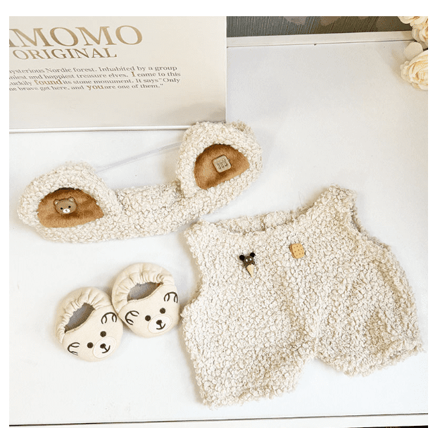 Dress your 58cm Zimomo Labubu doll in this adorable polyvinyl bear outfit jumpsuit. This handmade set is perfect for a cute and playful look. Clothes only, doll not included.