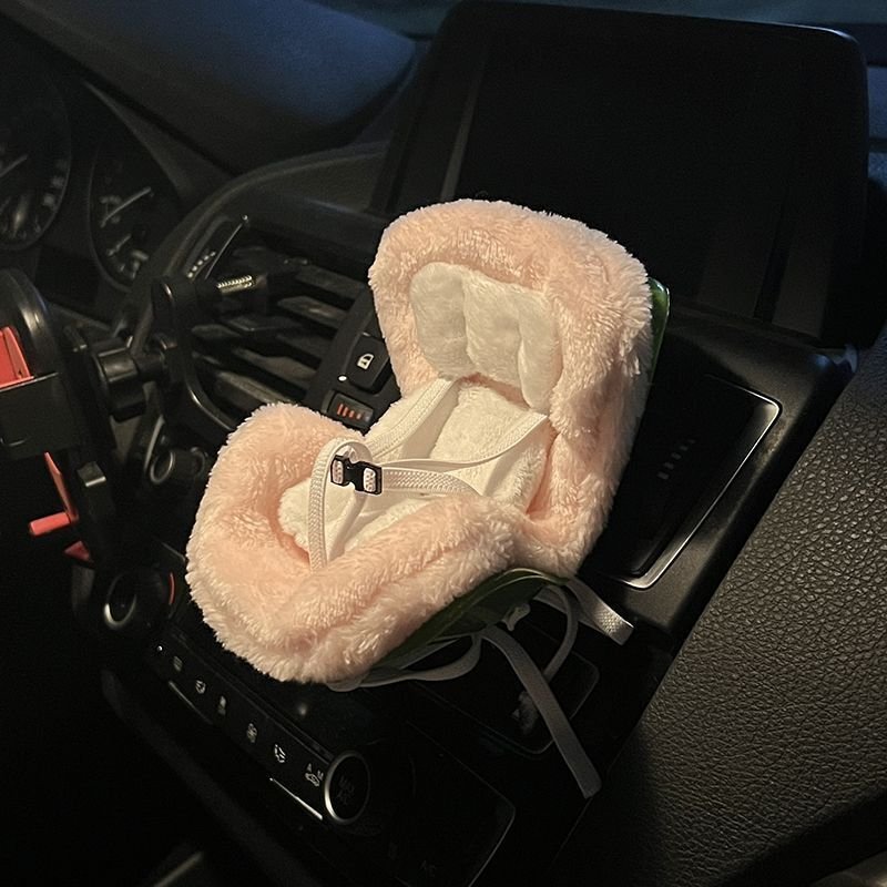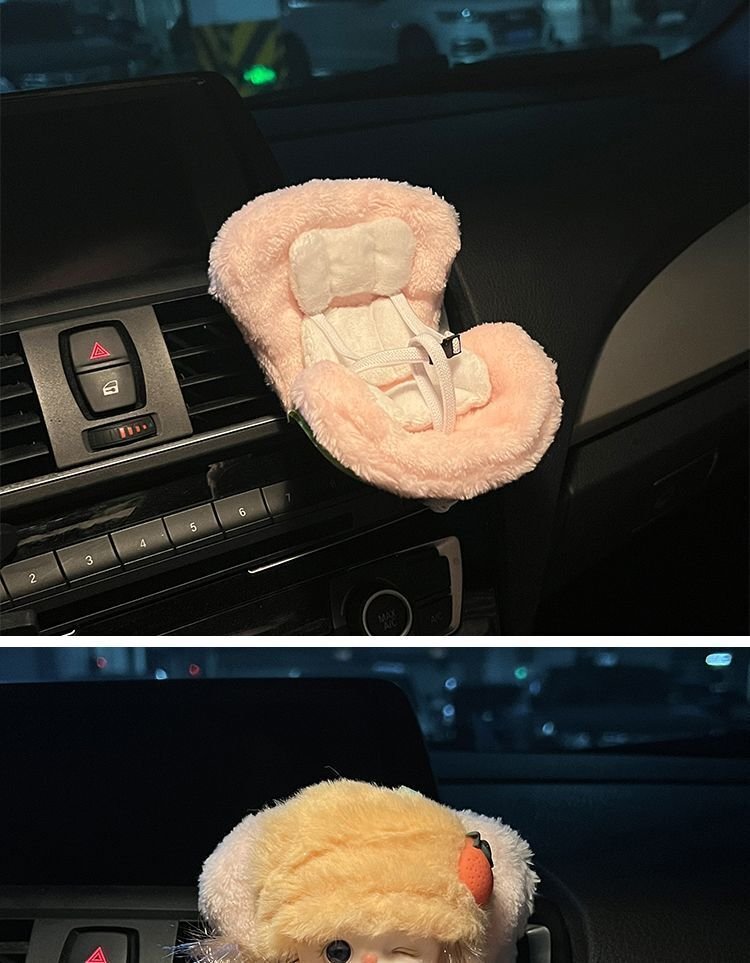 Give your Labubu a safe and stylish ride with this mini car doll safety seat ornament. Available in pink+brown, pink+red, and pink+white color combinations, this accessory is perfect for decorating your car or displaying your doll. Please note, the doll is not included.