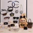 Explore a diverse range of blind box accessories for your 17cm Labubu figures, including miniature bags, glasses, and hairbands. Styles feature “dark lv square gold chain bag”, “Big gold chain”, “Black and white camellia hairband”, “Black frame sunglasses”, “Black frame white glasses”, “D home black/white gold chain bag”, “Deep brown lv presbyopic crossbody bag”, “G home black/white gold chain bag”, “Golden Camellia Hairband”, “Grandma Square White Gold Chain Bag”, “Grandma’s round black/white bag”, “Grandma’s Square Black Gold Chain Bag”, “Leopard print glasses”, “lv brown gold chain bag”, “Milk white camellia hairband”, and “Pula large black crossbody bag”. These accessories are perfect for customizing and enhancing your Labubu collection. (Doll not included).