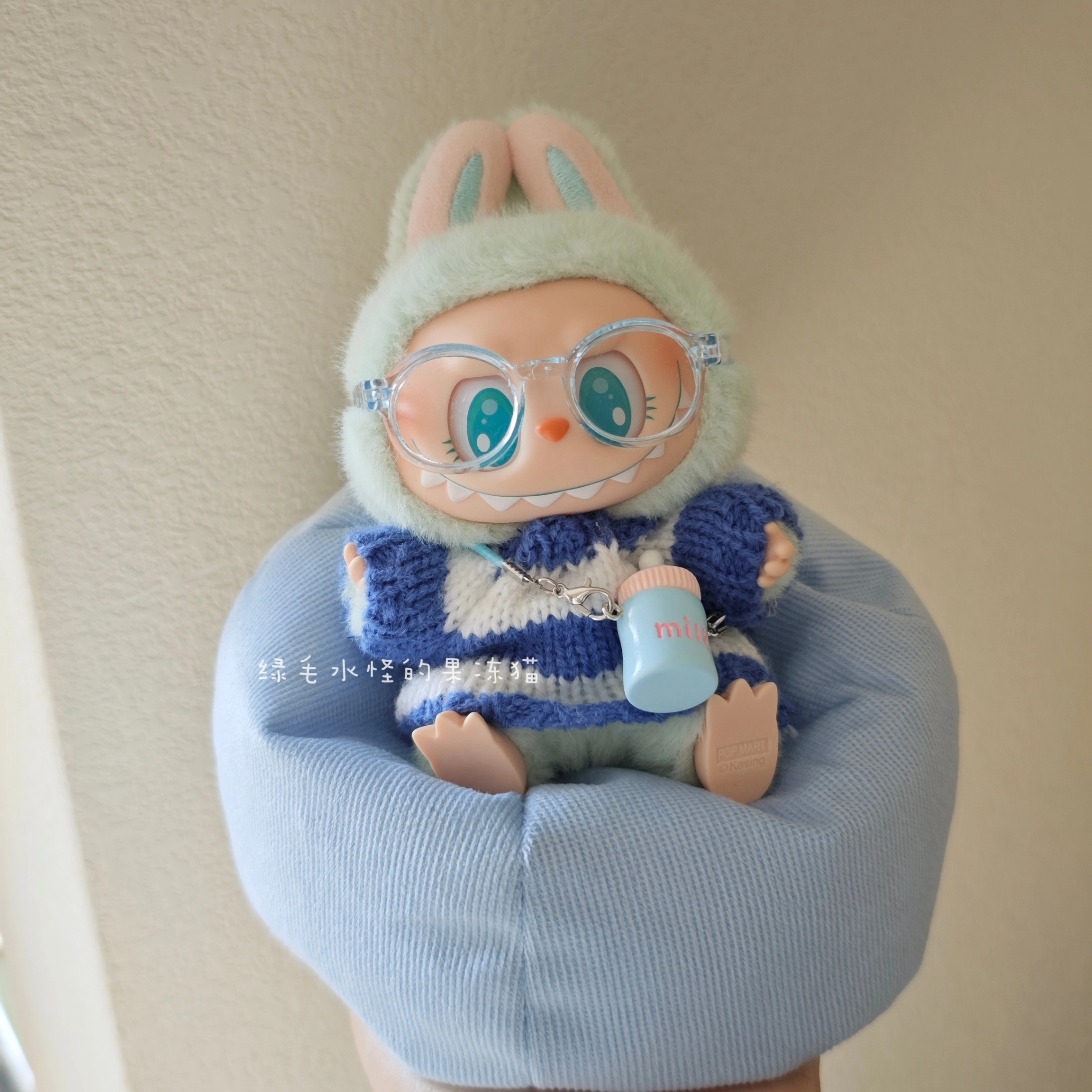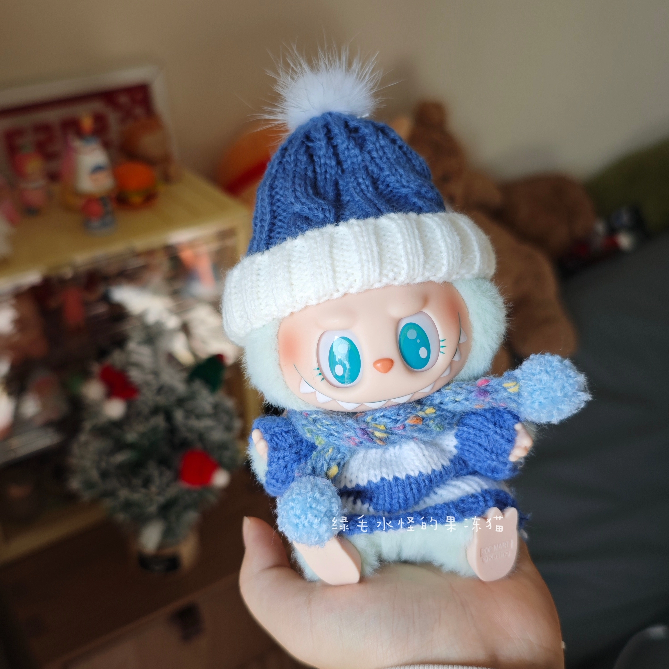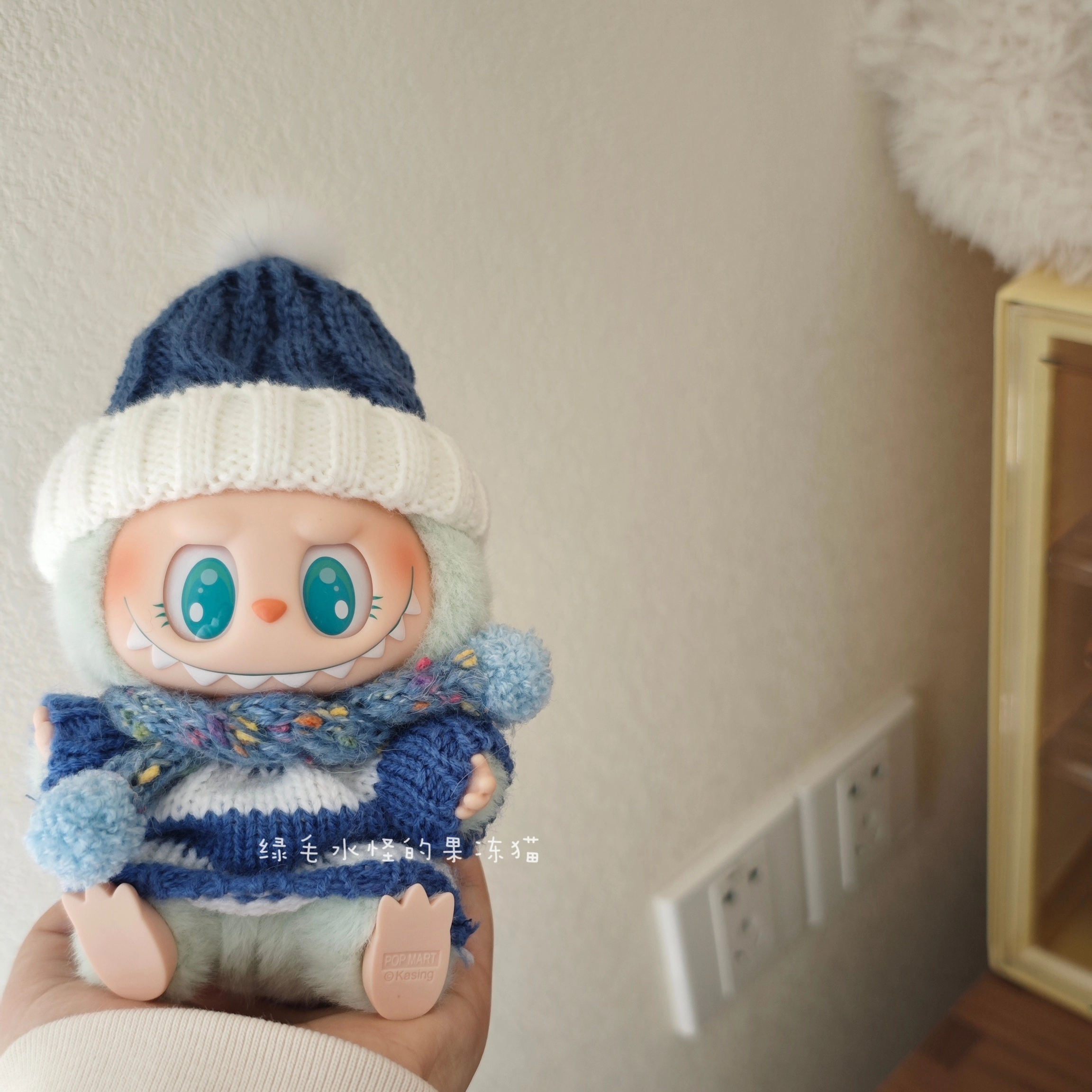 Keep your Labubu doll cozy and stylish with this blue and white striped sweater and hat set. It includes a charming knitted beanie with a white pom-pom and a matching striped scarf. This handmade outfit is perfect for adding a touch of winter warmth and cuteness to your doll”s collection. Doll not included. Ships in 1-3 business days with guaranteed delivery within 7-15 days.