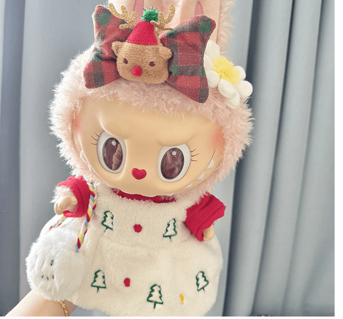 Celebrate the holidays with your Labubu doll in this festive handmade Christmas tree dress, adorned with a cute reindeer bow. This charming outfit is perfect for spreading holiday cheer. Clothes only, doll not included.