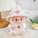 Prepare your Labubu doll for cooler weather with this diverse autumn and winter clothing collection. Featuring various sets including black, blue, brown, pink, and white outfits, complete with hats, water cups, and glasses. (Clothes only, doll not included).