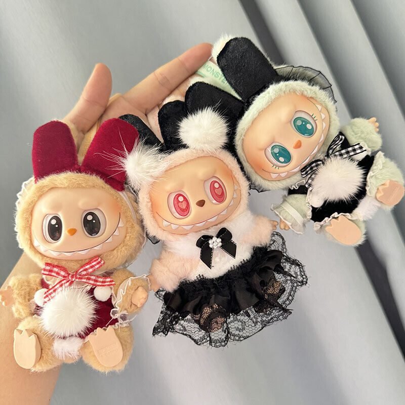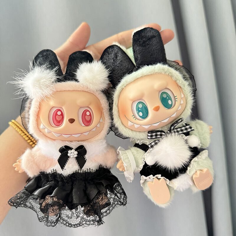 Mini bunny girl clothes set designed for Labubu sitting dolls. High-quality handmade, various styles available to make your Labubu doll cute and unique. Fast shipping & 14-day returns. Shop now at nekolulu!