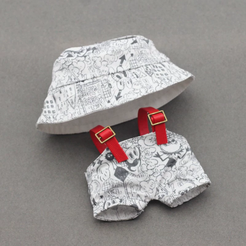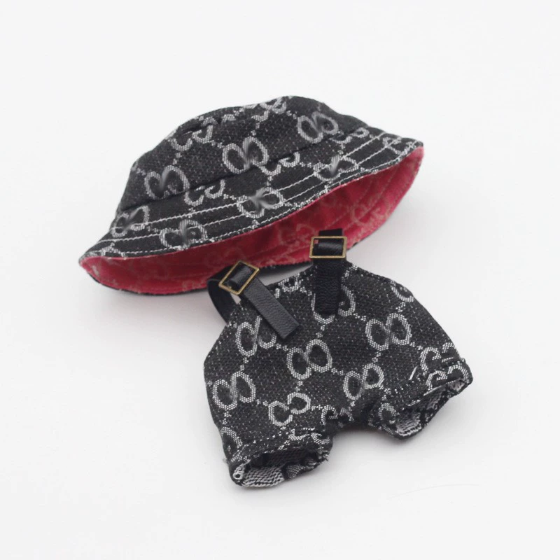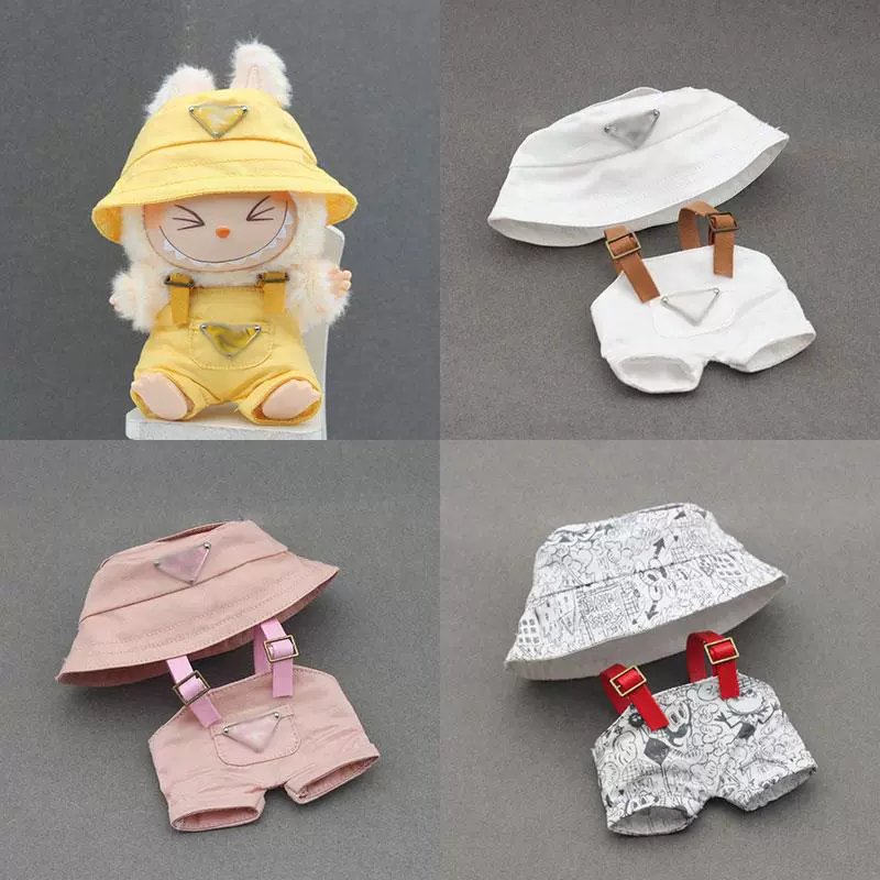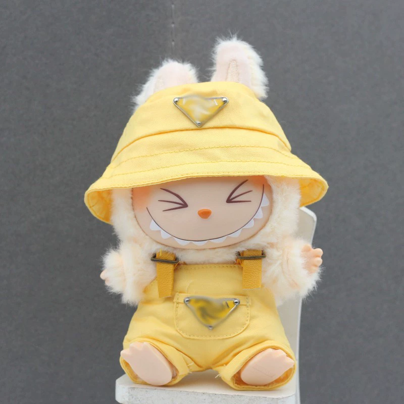 Dress your Labubu doll in these trendy and casual overall sets, each paired with a matching fisherman hat and optional sling. Available in a vibrant array of colors including yellow, white, pink, black, red, and denim. Choose from various patterns like GG-style or graffiti to give your Labubu a unique and fashionable look.