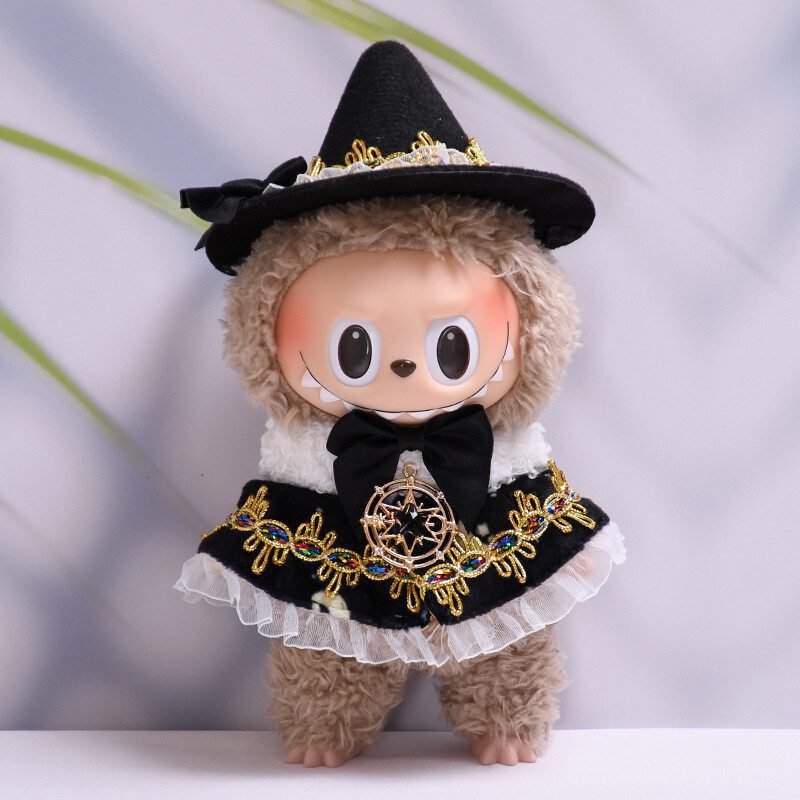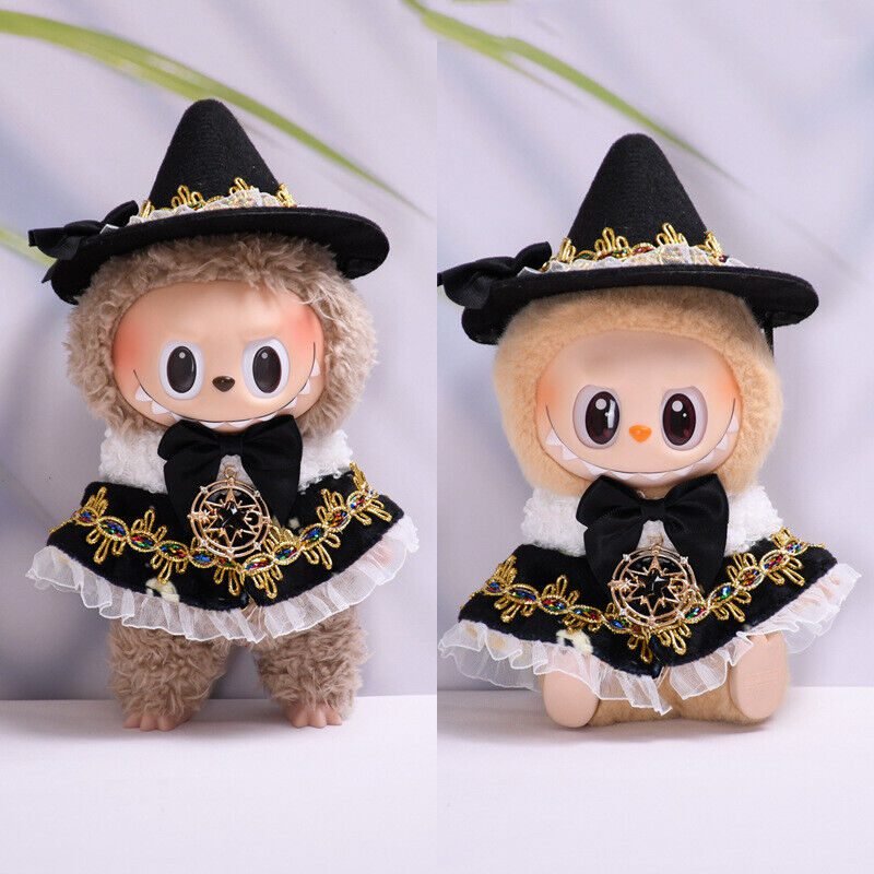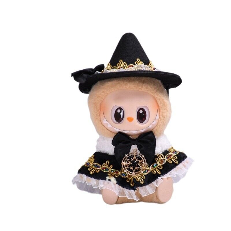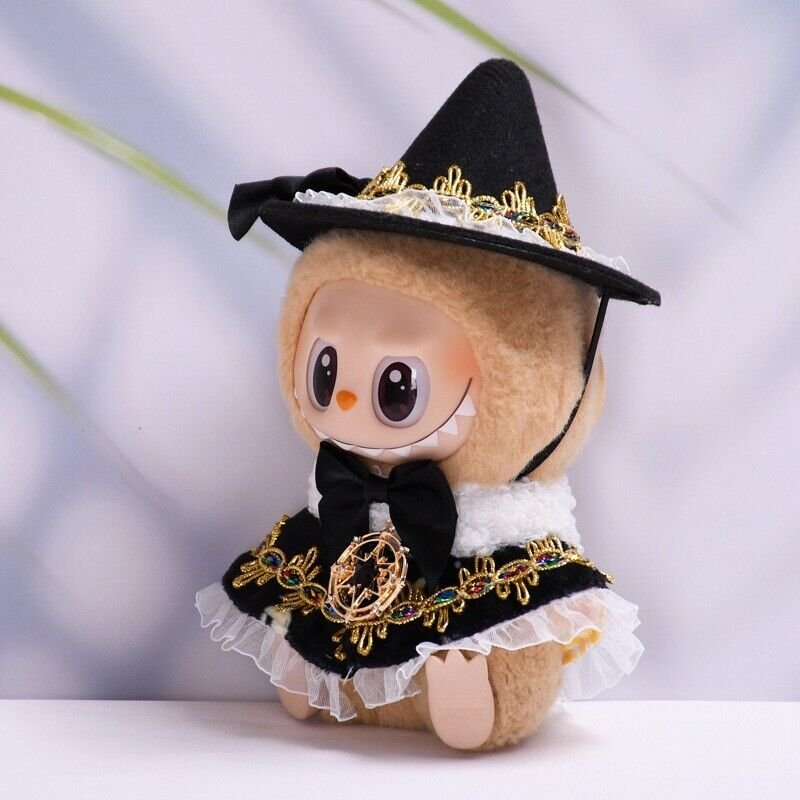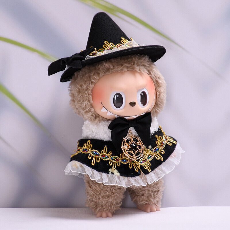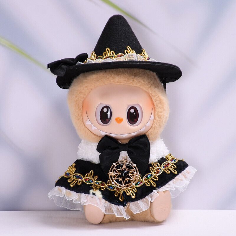Enchanting handmade black witch dress with a matching hat and bow, perfect for your Labubu The Monsters plush doll. This magical outfit is designed to fit Labubu Gen 1, 2 & 3 dolls, adding a whimsical touch to your collection.