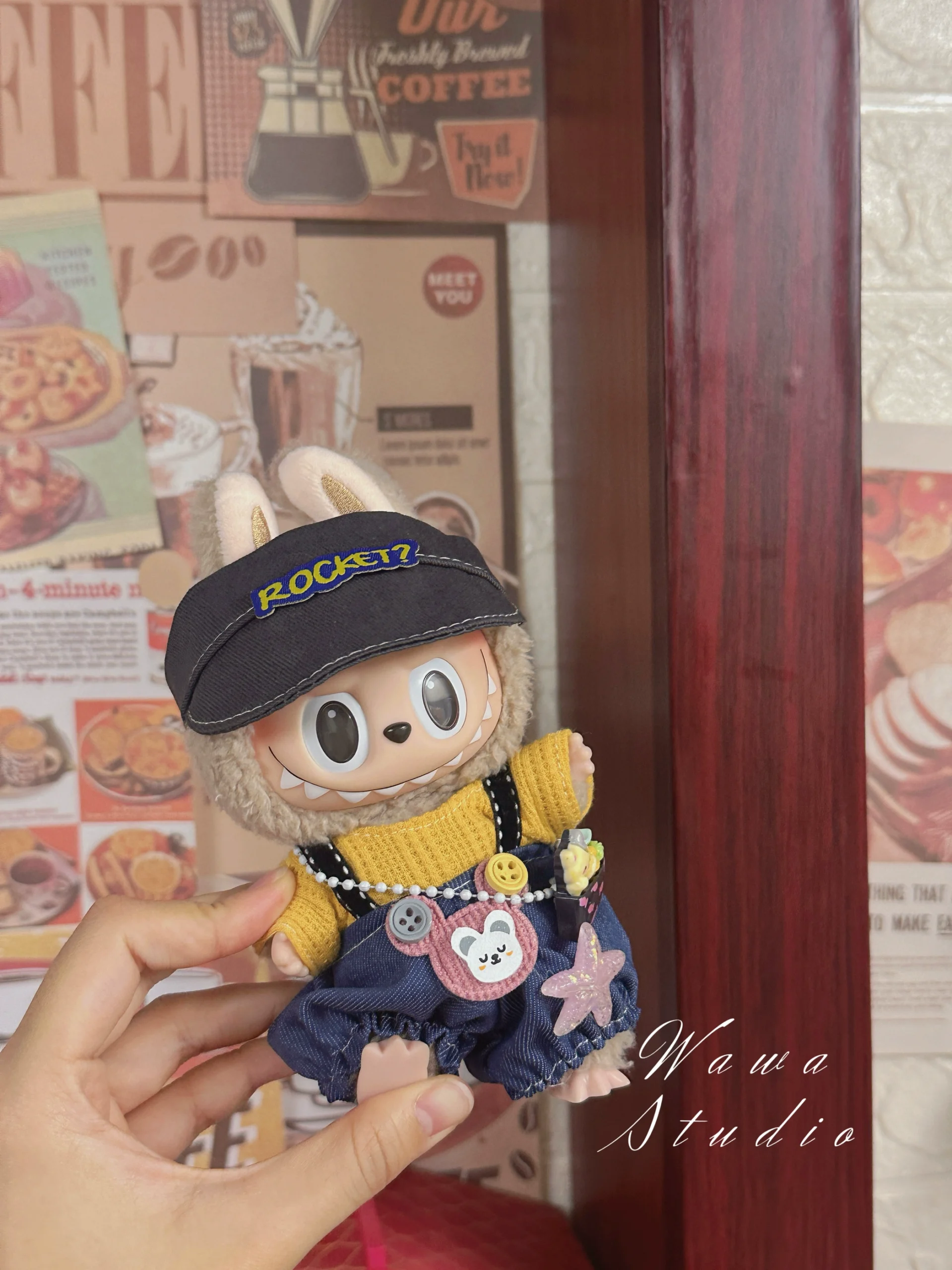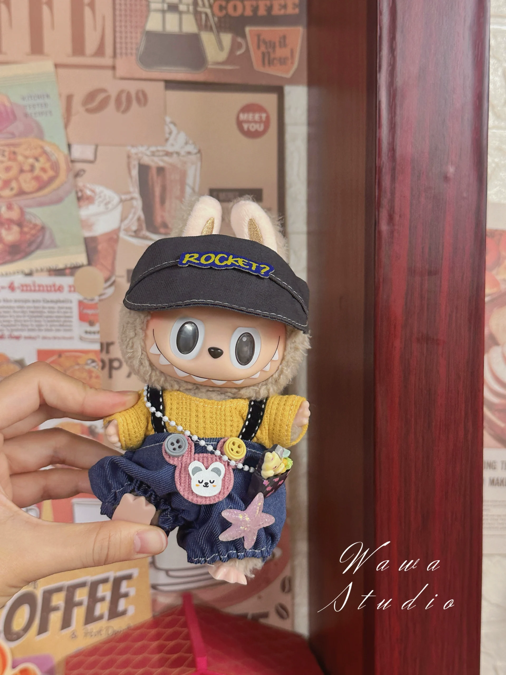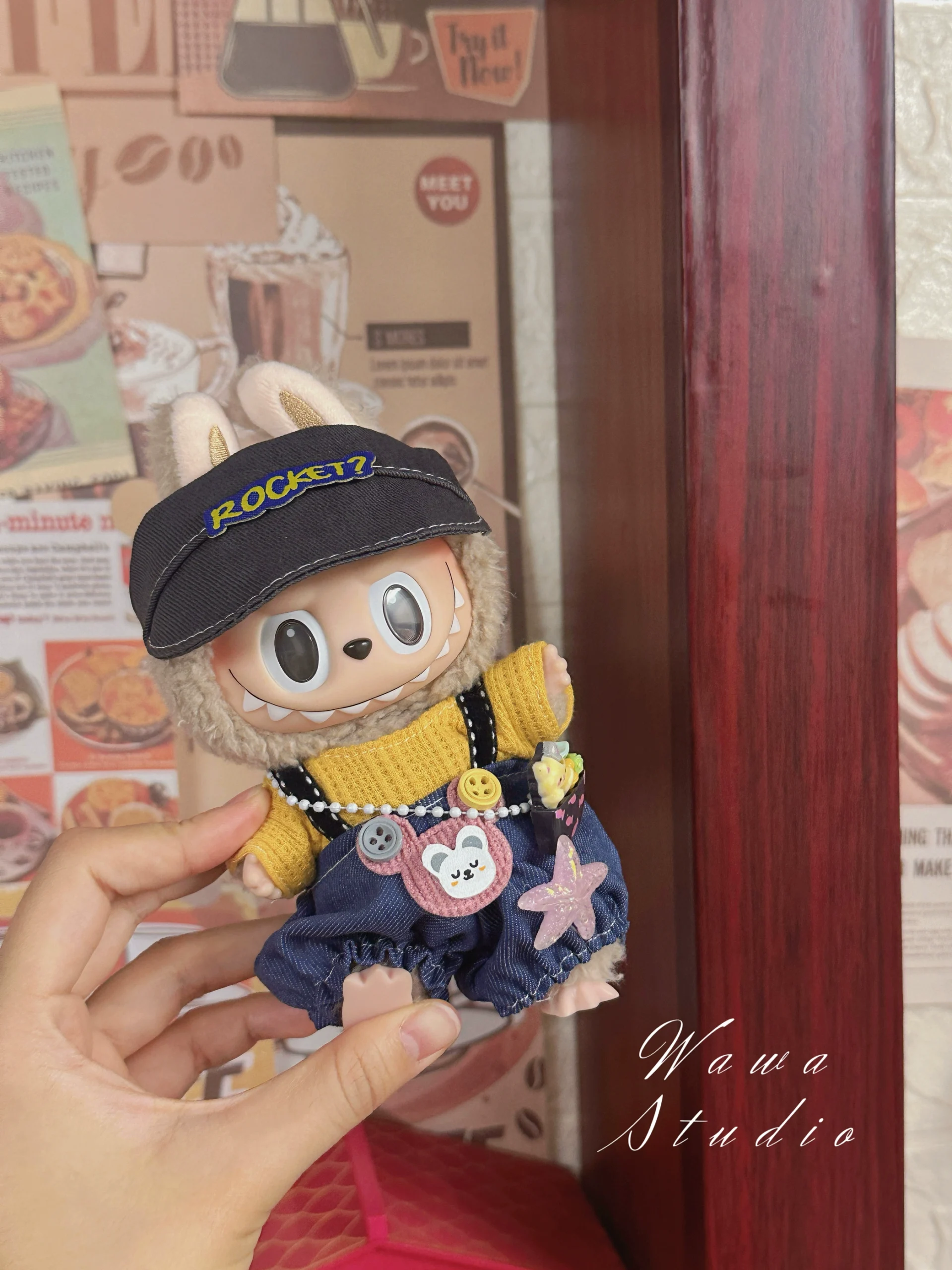 Dress your LABUBU The Monsters plush doll in this cool four-piece workwear outfit, featuring a starfish design. This replacement clothes set is perfect for adding a unique and adventurous look to your LABUBU doll. Please note, this product includes clothes only; dolls are not included. Ideal for collectors seeking distinctive attire for their beloved LABUBU Monsters.