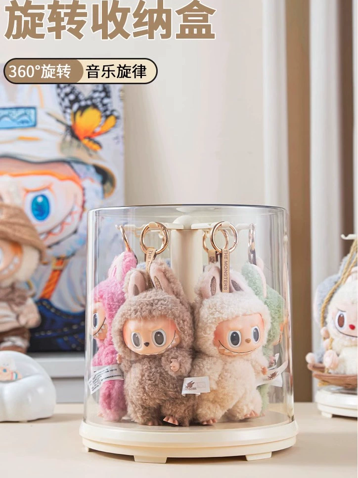 Elegantly display your Labubu pendants with this transparent, dust-proof, and rotatable storage box. Choose between a music rotation display box for automatic movement or a manual rotating model. A single transparent square box option is also available. Perfect for keeping your pendants organized, protected, and beautifully showcased.