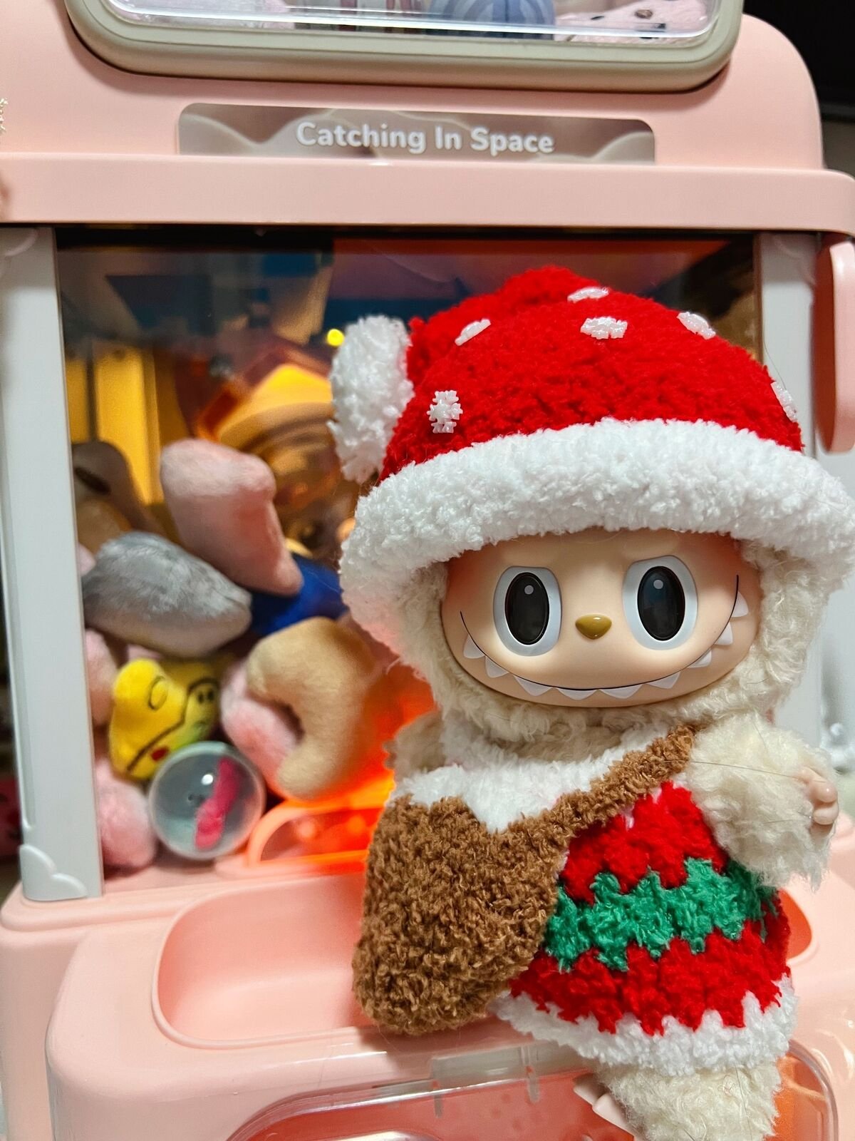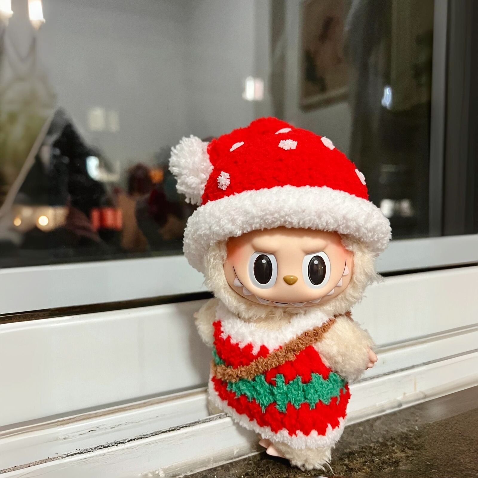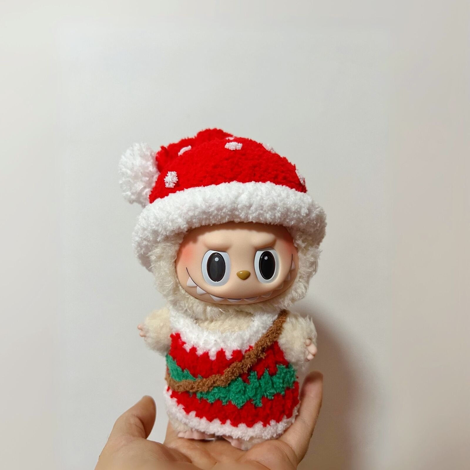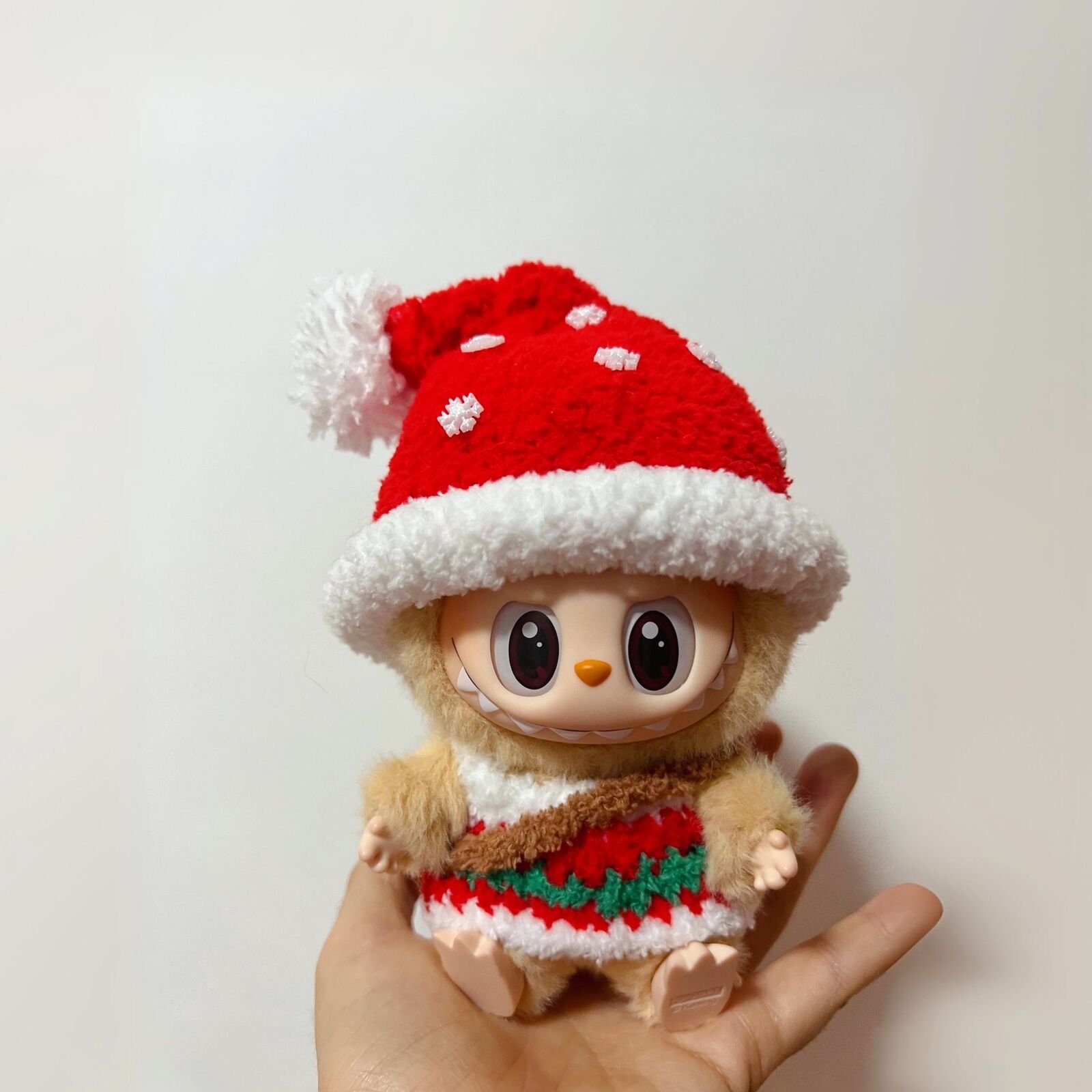 Handmade Christmas three-piece set for your Labubu doll, available in sitting and standing poses. Doll not included. Fast shipping, guaranteed delivery within 7-15 days. Shop now at nekolulu!