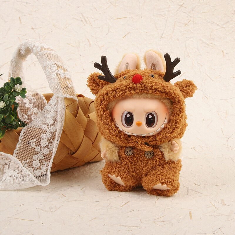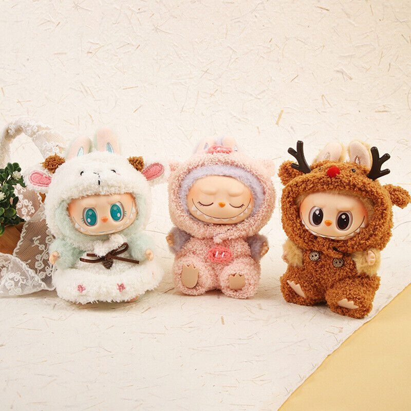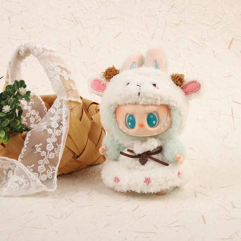 Exclusive Labubu handmade doll clothes, dolls not included. Made from soft cloud velvet, available in 5 adorable styles: deer, green dinosaur, piggy, pink dinosaur, and sheep skirt. Meticulously crafted to add unique charm to your Labubu dolls. Fast shipping & 14-day returns. Shop now at nekolulu!