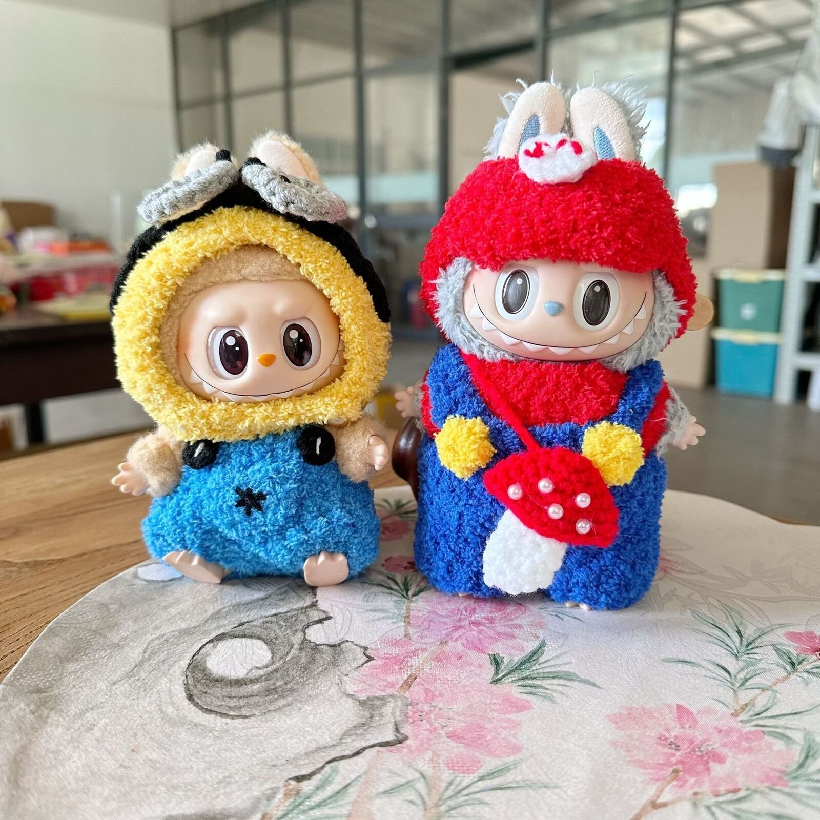 Modern replacement clothes for POP MART LABUBU, featuring handmade Mario four-piece set and Minions two-piece set. Doll not included. Perfect for customizing your Labubu collection. Fast shipping & 14-day returns. Shop now at nekolulu!