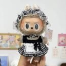 Transform your Labubu doll into an adorable maid with this handmade black and white plaid dress. Featuring delicate lace trim and a charming bow, this outfit is perfect for 15-17cm collectible dolls. (Clothes only, doll not included ).