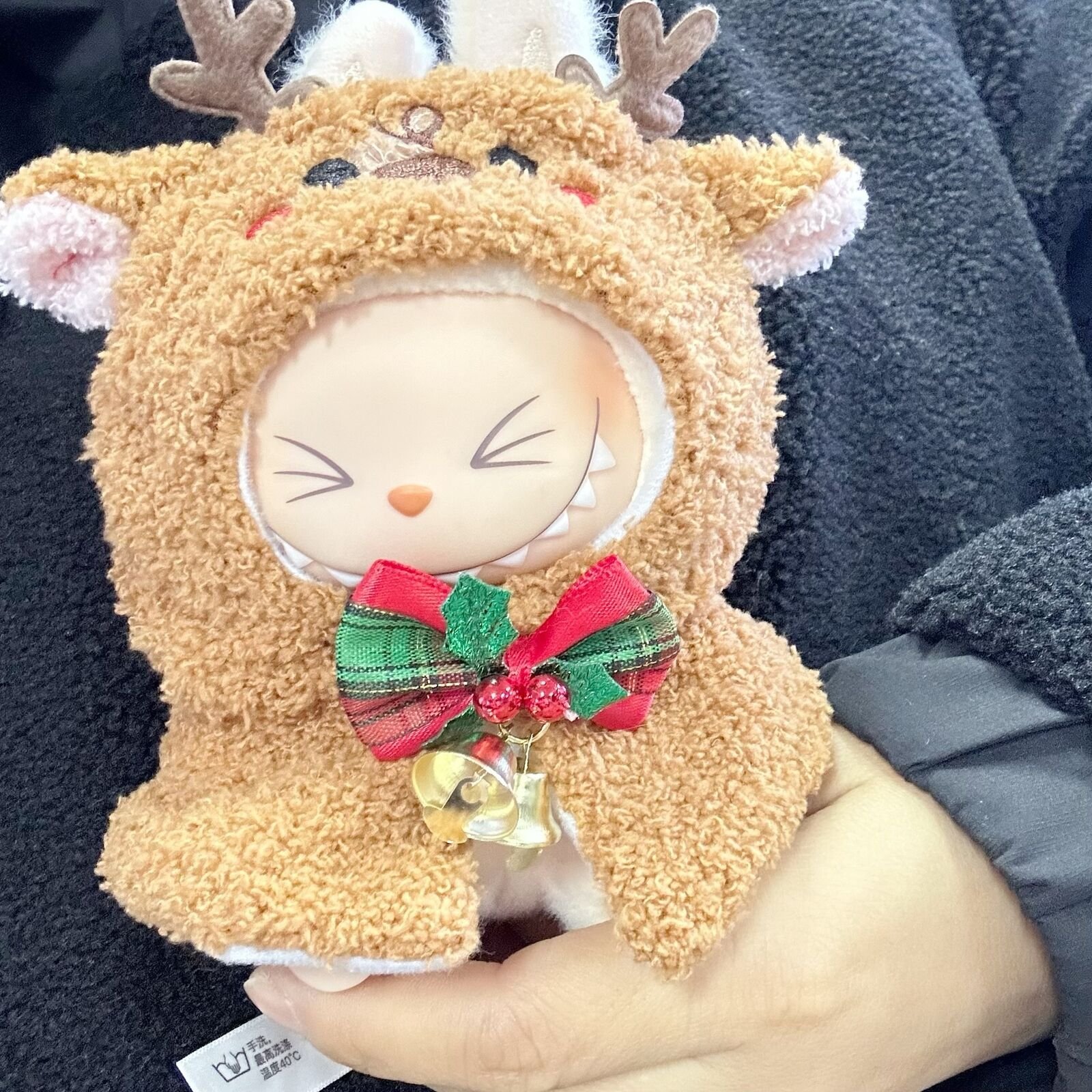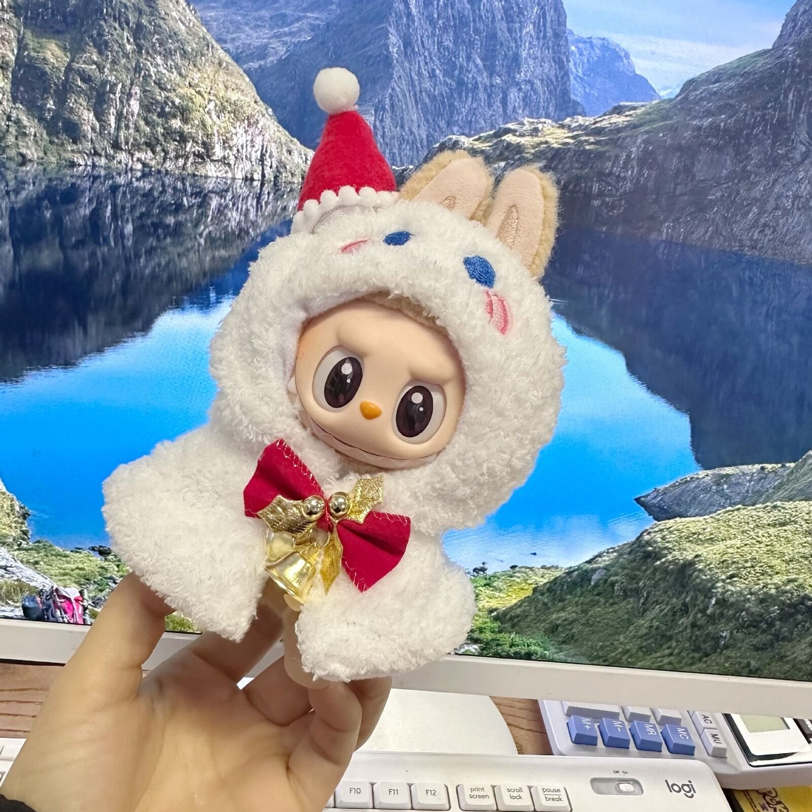 Handmade Christmas-themed clothes set for Labubu The Monsters plush dolls, featuring Elk Cloak and Yeti Cape. Doll not included. Perfect for customizing your Labubu collection. Fast shipping & 14-day returns. Shop now at nekolulu!