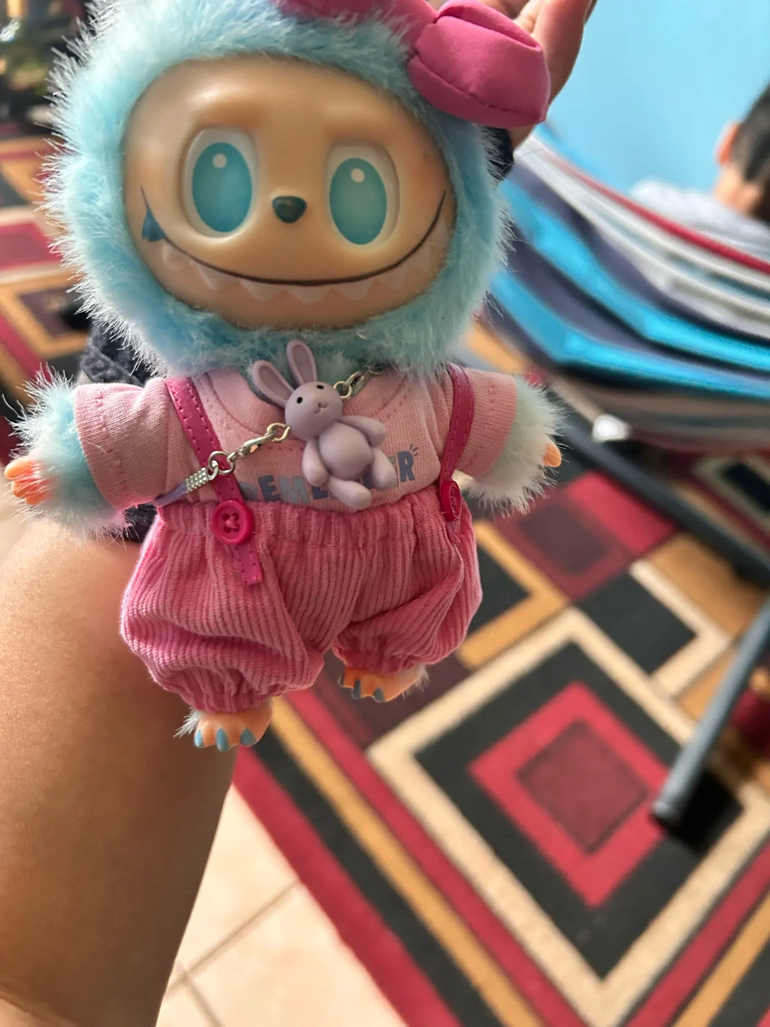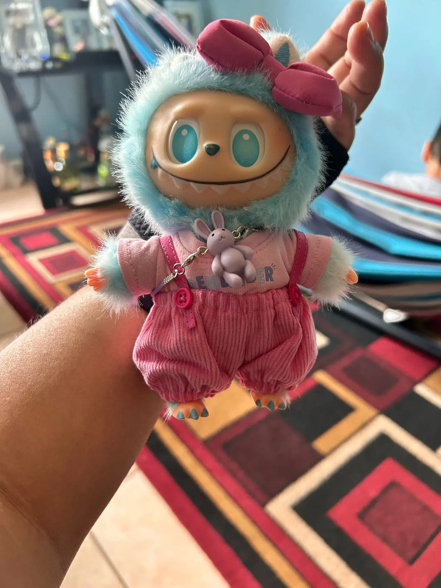 Discover the original 15/17CM Labubu V1/V2 doll clothes featuring a delightful macaron-themed plush outfit. This cute and colorful collection includes various clothing items and matching hair accessories, perfect for DIY styling and as a charming gift for kids. Made from soft, high-quality materials, this set ensures your Labubu doll looks adorable and unique. (Doll not included).